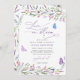 Esse convite é uma obra de arte que captura a delicada dança da beleza natural das flores e a graça efêmera das borboletas. O convite promete um evento repleto de delicado cheiro das flores, o charme das borboletas e a alegria esmagadora que acompanha a viagem ao casamento. Tal como as intrincadas padrões do voo de uma borboleta, este convite convida todos a celebrar o amor, a transformação e a beleza suave que define uma união florescendo como a lavanda num jardim sereno. Personalize o convite inserindo seus detalhes e, se quiser alterar o estilo e a posição do texto, clique no botão "Clique para personalizar mais". Consulte a coleção de cheios aqui: https://www.zazzle.com/collections/trendy_elegant_flower_lavender_collection-119835281918261692