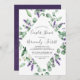 Esta lavanda rústica e casais de eucalipto é o convite para chá perfeito para um simples e elegante chá de casamento ao ar livre. O design floral apresenta folhas de cor aquosa de eucalipto e verde com espinhos de flores silvestres roxas.