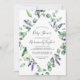 Esta lavanda rústica e o convite ao chá de fraldas de eucalipto são perfeitos para um chá ao ar livre simples e elegante. O design floral apresenta folhas de cor aquosa de eucalipto e verde com espinhos de flores silvestres roxas.