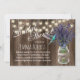 Lavanda Rústica, Mason Jar & Hummingbird Barn Wood Convites de chá de panela.