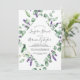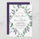 Esta lavanda rústica e o convite para chás de lingerie de eucalipto são perfeitos para um chá de casamento ao ar livre simples e elegante. O design floral apresenta folhas de cor aquosa de eucalipto e verde com espinhos de flores silvestres roxas.