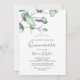 Esta lavanda rústica e o eucalipto deixam Quinceañera um convite perfeito para uma simples e elegante festa de aniversário exterior. O design floral apresenta folhas de cor aquosa de eucalipto e verde com espinhos de flores silvestres roxas.
