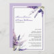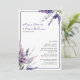 Bonito convite para casamento com um layout moderno. A lavanda floresce em dois cantos opostos. Acentuado com um toque de caligrafia moderna Personalizado com o primeiro e sobrenome da noiva e do noivo. Todas as informações que seus convidados precisam estão neste cartão. As informações do R.S.V.P. são incluídas juntamente com informações do registro e do site de casamento. Um design de flor silvestre russa para o seu casamento casual