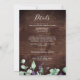 Esta floral de madeira rústica de lavanda, tudo em um convite de casamento é perfeito para um casamento simples e elegante ao ar livre. O design floral apresenta folhas de cor aquosa de eucalipto e de verde com ranhuras de flores silvestres roxas sobre fundo de madeira falsa. Salve o papel, incluindo os detalhes na parte traseira do convite de casamento, em vez de em um cartão de cercado separado. Inclua as informações de RSVP também se seu convidado estiver respondendo eletronicamente (opcional).