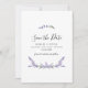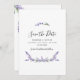 Lavanda Do País Salve O Convite De Data. Projetado com flores de lavanda pintadas manualmente roxas com estilização do tipo aquarela. Personalize este design com seu nome, data do casamento e qualquer outra mensagem personalizada que você gostaria de incluir! A cor de fundo está definida como branca, no entanto, você pode escolher uma cor de preenchimento de sua escolha.