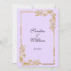Um simples quadro dourado com sotaques de canto rodeia a mensagem. Coloque os primeiros nomes da Noiva e do Groom e data de um lado dando aos seus convites uma sensação menos formal. Por outro lado, a informação pertinente sobre o casamento acrescenta uma chama clássica.