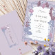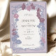 Abraçar o encantamento do crepúsculo com este maravilhoso convite para o casamento, onde a beleza do crepúsculo é capturada em tons de lavanda e mauve. O fundo sugere a misteriosa transição do dia para a noite, fornecendo uma canvas dramática para os delicados sotaques florais brancos e maduros que adornam a fronteira. Os nomes de Jennifer e Matthew ocupam o palco central num elegante e fluente roteiro que evoca o romance de um caso noturno. Os detalhes do seu casamento de setembro na vibrante cidade de Nova Orleans são claramente esboçados em uma serifa clássica. Este convite não é apenas um chamado a uma celebração, mas uma introdução a uma noite cheia de amor, alegria, e a promessa de um belo começo.