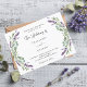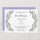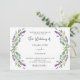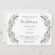 Um fundo branco decorado com flores lavandas e verde de eucalipto. Personalize e seus nomes e detalhes. Fundo: lavanda, fundo colorido violeta.