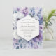 An ethereal watercolor design blooms with soft lavender and white florals. Delicate eucalyptus leaves add depth to this romantic botanical composition. Perfect for a whimsical, elegant celebration.