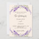 Celebrate your elegant botanical wedding with this cohesive lavender invitation. The design features hand-painted watercolor lavender sprigs forming a delicate wreath on a soft cream champagne background. It is a perfect match for couples hosting a late summer garden ceremony or a rustic fall harvest celebration.