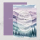 Celebrate your love story with this elegant wedding invitation featuring our Lavender Frost in the Alpine Mist design. Soft watercolor mountains in shades of lavender and violet rise above misty evergreens and snowy hills, creating a serene and romantic alpine scene. With its delicate blend of cool tones and airy textures, this invitation captures the quiet magic of winter romance—perfect for mountain weddings, winter ceremonies, or nature-inspired celebrations.