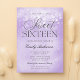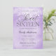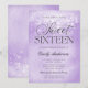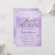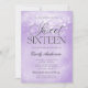 Este convite moderno de doce 16 roxo lavanda apresenta um fundo de luzes cintilantes trendy e uma fonte de letra elegante. Um convite glamoroso que você pode editar usando as ferramentas de modelo online.