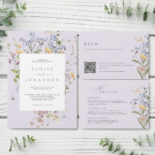 Convites Lavender Wildflower Meadow Garden QR Code Wedding