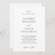 Convite moderno de casamento com um simples design com um layout minimalista. As fontes são uma combinação de uma fonte serif clássica e um script elegante.
