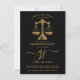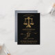 Celebrate your legal milestone in style with this elegant law school graduation party invitation featuring the iconic scales of justice in gold on the front and your full photo on the back. Gold on black. The classic layout pairs refined serif type with a sweeping script monogram for a timeless and professional look. Ideal for future attorneys, JD graduates, or anyone completing a legal studies degree, this design honors hard work and ambition with grace. Personalize with your name, party details, and RSVP information using the easy template. A perfect way to gather friends and family in recognition of this major achievement. Available in print, as a digital download, or both.