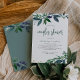 Este convite para chás botânicos moderno apresenta folhas de aquarela em tons de tendências verdes, azuis e cinzas para uma aparência na moda que é minimalista e rústica.