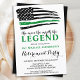 O Homem O Mito A Lenda! Convites à Reforma Militar da Linha Verde fina. Celebre anos de serviço dedicado, sua aposentadoria militar e convide amigos e familiares para o seu partido militar com este moderno Convite à Reforma Militar de Bandeira Verde. DESIGN americano na bandeira da Polícia, cores, design branco preto vestido e verde. Veja nossa coleção para combinar presentes de aposentadoria militar, favoritos para festas militares de aposentadoria e suprimentos. COPYRIGHT © 2021 Judy Burrows, Black Dog Art - Todos Os Direitos Reservados. Recepção Militar Aviso de Legenda de Bandeira de Linha Verde Fino