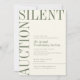 A tipografia clássica se sente moderna e fresca em um layout único e surpreendente que convida os convidados a um leilão de caridade silencioso com um sentimento de calor no texto verde da mossy e no fundo branco quente.