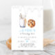 Leite minimalista e biscoitos, qualquer convite de aniversário para meninos azuis.