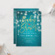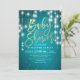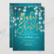 Modelos de Cartões de Convite para chás de fraldas - Letra de Folha Ouro Faux Elegante e Luzes de String Vintage com Fundo Sparkle Azul Turquesa. Todo estilo de texto, cores, tamanhos podem ser modificados para ajustado das suas necessidades!