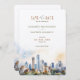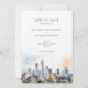 Capture a essência do seu próximo casamento em Dallas com este requintado convite de Save-the-Date, apresentando uma suave representação em aquarela da icônica silhueta de Dallas. O convite combina tipografia elegante com uma paleta pastel sonhadora de azuis, dourados quentes e brancos suaves, reminiscente de um nascer do sol no Texas. A Reunion Tower e a paisagem urbana fornecem um pano de fundo romântico, preparando o cenário para o seu dia especial. Este convite é perfeito para casais que procuram uma mistura de sofisticação urbana e elegância artística.