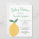 Este convite para o chá de fraldas apresenta um limão amarelo agudo com texto verde e preto suave. Personalize este convite com os detalhes do chá de fraldas. Isto é perfeito para um chá de fraldas num dia quente!