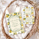 A fresh and cheerful baby shower design inspired by sunny citrus orchards. Bright lemons, delicate blossoms, and soft green leaves frame a classic scalloped centerpiece, creating a warm and inviting look. Perfect for spring and summer celebrations, this design blends natural charm with elegant typography for a timeless feel. A beautiful choice for honoring the mother-to-be in a vibrant, joyful setting.