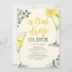 Host a memorable birthday with adult alcohol birthday invitations designed with a yellow and white striped backdrop, watercolor lemon drop martinis, and lush eucalyptus accents. The fun 'a tini drop older' saying brings a lighthearted element, and the elegant template lets you personalize details effortlessly. Ideal for cocktail lovers seeking a chic party vibe.