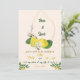 The invitation embraces a playful and cheerful design, reflecting the spirit of the occasion. Splashes of pink and green dance around the lemons, creating a harmonious composition that enlivens the senses. The colors are a celebration of life, capturing the essence of laughter, love, and the zestful moments that lie ahead.