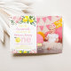 Este adorável convite apresenta limões coloridos de aquarela, flores cor-de-rosa e falsos tecidos de papel dourado.