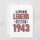 Camiseta com a citação engraçada Lenda Viva Desde 1943 é um presente legal para ele ou ela. Camiseta vintage super legal, ideia de presente de aniversário para nascido em 1943. Ótimo presente para Papai, Mamãe, Vovó ou Vovô.