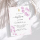 Um convite ao batismo moderno e elegante. Um fundo branco chic decorado com folhagem de eucalipto rosa e falso brilho. Personalize e adicione sua foto da criança, obrigado nota e nome. Fundo: fundo rosa.
