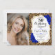 Convites Leopard Impressão Dourada Real Foto Azul 50º Anive
