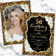 Convites Leopard Imprime Dourada Foto Preta 50º Aniversário