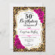 Convites Leopard Imprime Dourada Foto Rosa 50º Aniversário