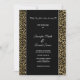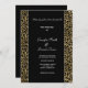 This wedding invitation is shown in a classic layout with a fresh look of a lovely black and gold metallic glitter leopard print design.