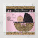 Convites Leopardo rosa-rosa-chá de fraldas-menina-branca