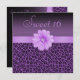 Costume elegante Doce 16 convites de festas de aniversários com lindas e profundas peles roxas e lilás/animais de chita e uma flor lilás fofa com joias de diamante em uma fita lilás bonito. Estes convites elegantes são decorados de ambos os lados. Menina, chic, moda, convites modernos. Por favor, note: todos os convites para o Zazzle têm imagens impressas em formato plano. O texto, a fonte e a cor da fonte podem ser personalizados. Se precisar de ajuda para personalizar seu produto, entre em contato comigo através da minha loja. Ficarei feliz em ajudar.