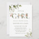 É um convite para chás de fraldas de meninas que apresenta letras alfabéticas e buquês decorados com flores de aquarela e folhas em verde-sábio, rosa-pincel, vermelho, branco, terracota e verde. Para uma personalização mais avançada deste design, clique no BOTÃO FERRAMENTA DESIGN AZUL acima. Itens correspondentes também estão disponíveis.