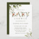 Este convite para chá de fraldas contém letras alfabéticas e buquês decorados com flores e folhas aquáticas em verde-sábado, rosa-pincel, vermelho, branco, terracota e verde. Para uma personalização mais avançada deste design, clique no BOTÃO FERRAMENTA DESIGN AZUL acima. Itens correspondentes também estão disponíveis.