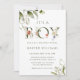 É um convite para chás de fraldas de menino que apresenta letras alfabéticas e buquês decorados com flores de aquarela e folhas em verde-sábio, rosa-pincel, vermelho, branco, terracota e verde. Para uma personalização mais avançada deste design, clique no BOTÃO FERRAMENTA DESIGN AZUL acima. Itens correspondentes também estão disponíveis.
