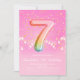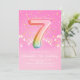 Convites Letra cor-de-rosa arco-íris número sete, Aniversár