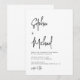 Este convite para o casamento apresenta um roteiro contemporâneo de cartas escritas à mão, criando um na moda e um sentimento caprichoso. O estilo informal e manuscrito adiciona um toque pessoal, enquanto o layout claro garante que os detalhes importantes sejam fáceis de ler. Perfeito para casais que buscam uma forma única e moderna de convidar seus convidados, este convite dá um tom lúdico para sua celebração de casamento.