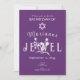 O convite moderno de morcego roxo mitzvah com uma bela tipografia branca tem flores silvestres que você pode mover e redimensionar com suas letras. O trabalho de arte botânico pode ser mudado de cor com a sua inscrição. Altere facilmente a cor de fundo neste convite de bat mitzvah simples e exclusivo. Essa modelo é facilmente personalizada para qualquer tema de ameixa, morango selvagem, lavanda, festa de aniversário roxa.