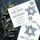 Cartão perfeito para anunciar um bar ou bat mitzvah! Arte feita à mão para você com estrela de davi na frente e no verso! TOTALMENTE PERSONALIZÁVEL! Clique em “Personalizar” acima para editar o texto. Clique em "editar usando a ferramenta de design" para ajustar as fontes, cores e posicionamento e para excluir o design do verso se preferir. Além disso, você pode facilmente alterar a cor do fundo para atender às suas preferências e mudar o estilo do cartão para ter bordas quadradas, arredondadas ou formas mais exclusivas. VÁ DE VERDE, VÁ DIGITAL! Acesse os designs instantaneamente. Personalize, baixe e envie via e-mail em minutos. Economize seu tempo e dinheiro, menos caminhões nas estradas e menos resíduos de papel - a escolha perfeita e ecológica. O design também está disponível como cartões postais ou cartões de papel simples, verifique minha loja! OBRIGADO POR APOIAR ARTISTAS INDEPENDENTES! Todas as obras de arte e designs são criados por mim. Eu adoro desenhar e pintar! Obrigado por comprar comigo e apoiar minha criatividade! :) Verifique minha loja para muitas outras cores e designs ou me avise se você gostaria de algo personalizado! Também estão disponíveis itens correspondentes, como cartões de acompanhamento, etiquetas de endereço de devolução, lembrancinhas de festa, etiquetas e sacolas de presente, cartões de agradecimento, cartões