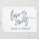 Placa de Sinalização para Bufê de Doces "O Amor é Doce" em Brush Script (Azul Desbotado): Decore a mesa de doces ou bufê da sua festa de casamento com este moderno letreiro de caligrafia. Está configurado na cor azul desbotado / cinza-azulado. Na verdade, é um pouco mais cinza do que azul, mas você pode mudar a cor facilmente alterando a cor do fundo!