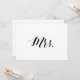 Estilo de caligrafia simples e elegante em preto e branco para placa de cadeira de "Sra." de casamento.