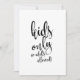 Um letreiro de casamento elegante e moderno, apresenta o texto "Apenas crianças, adultos não são permitidos!" em uma fonte de letra cursiva extrovertida, a textura da pincelada adiciona um sentimento espontâneo e divertido. A cor do fundo pode ser personalizada de acordo com as suas necessidades e preferências, por favor entre em contato comigo se tiver algum pedido especial.