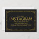 Placa de casamento em estilo art déco simples e elegante com "Hashtag do Instagram", personalizada com o seu próprio texto, apresenta uma moldura art déco dourada sobre um fundo preto.