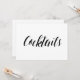 Sinal de casamento "Cocktails" em estilo de caligrafia preto e branco simples e elegante.